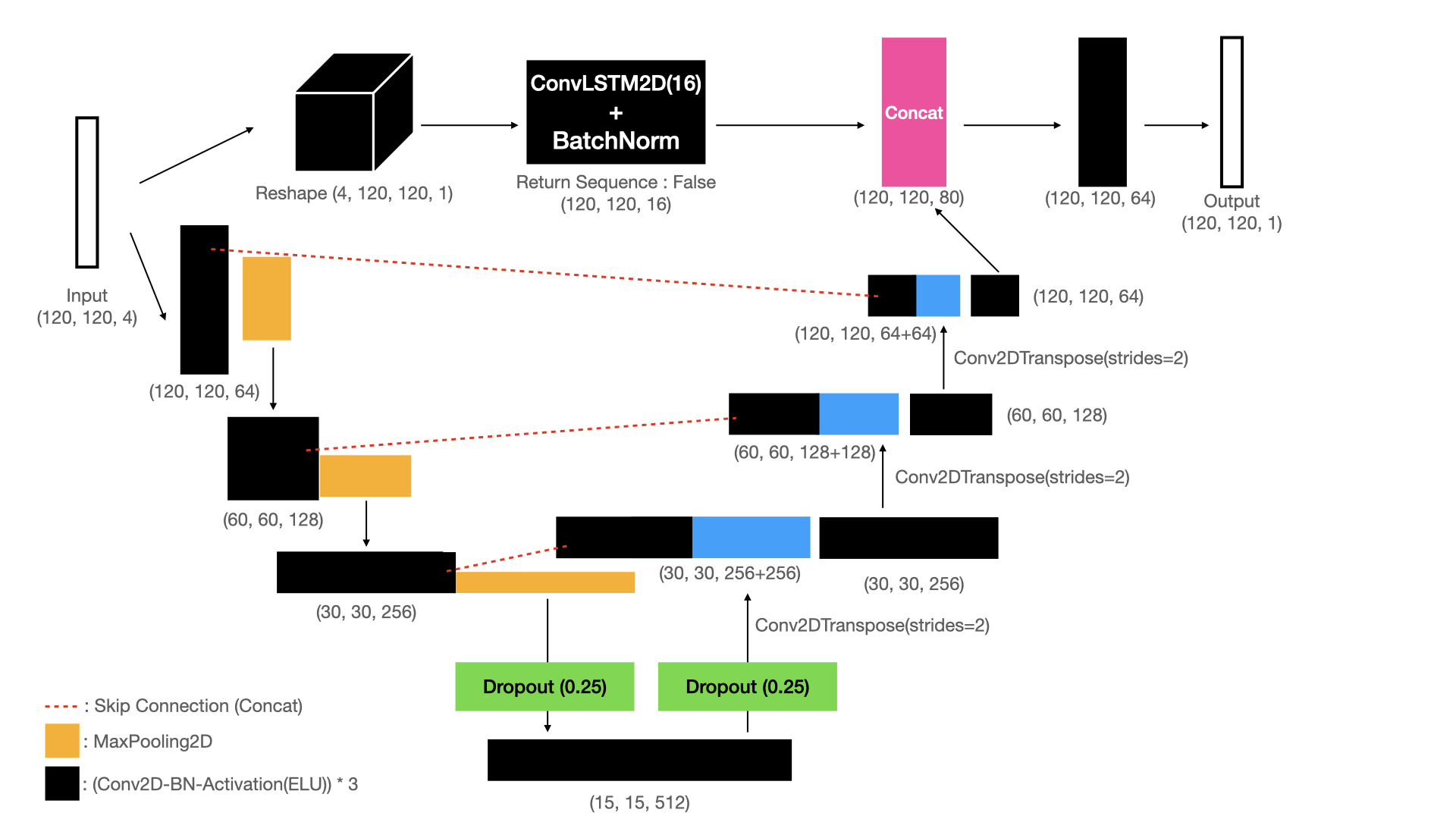 두번째 시도는 CNN을 같이 이용한 모델을 시험해 보았습니다. 1D CNN만을 이용하여 만든 VGG style 의 모델은 전혀 학습을 하지 못했고, RNN과 CNN이 결합된 모델 역시 마찬가지였습니다.